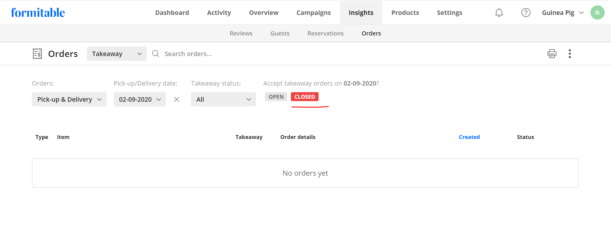 If you can not or do not want to accept takeaway orders on a specific day or for multiple days, you can easily configure this in Formitable. Learn how to either disable takeaway orders on a single day or during a period of days.