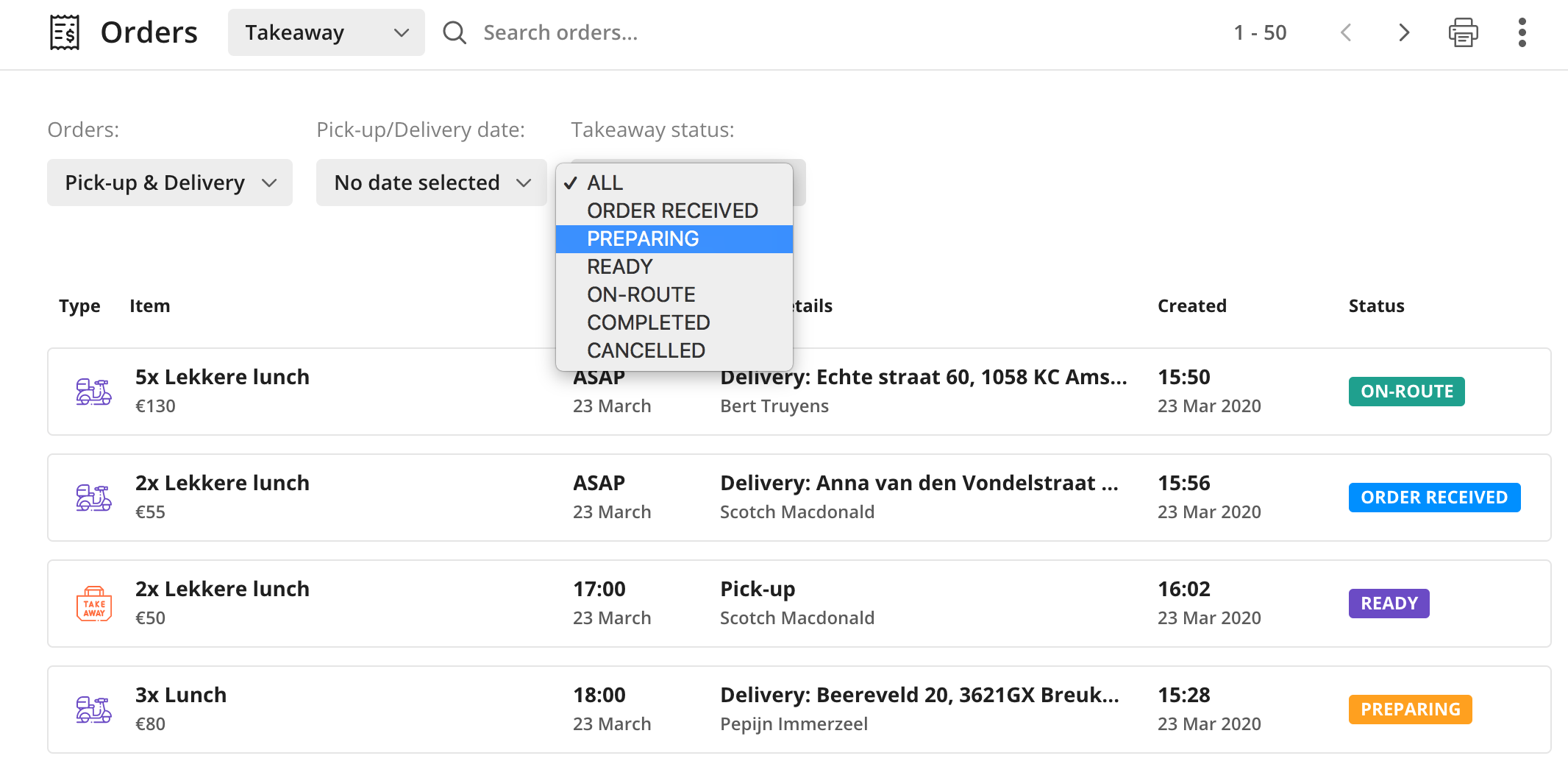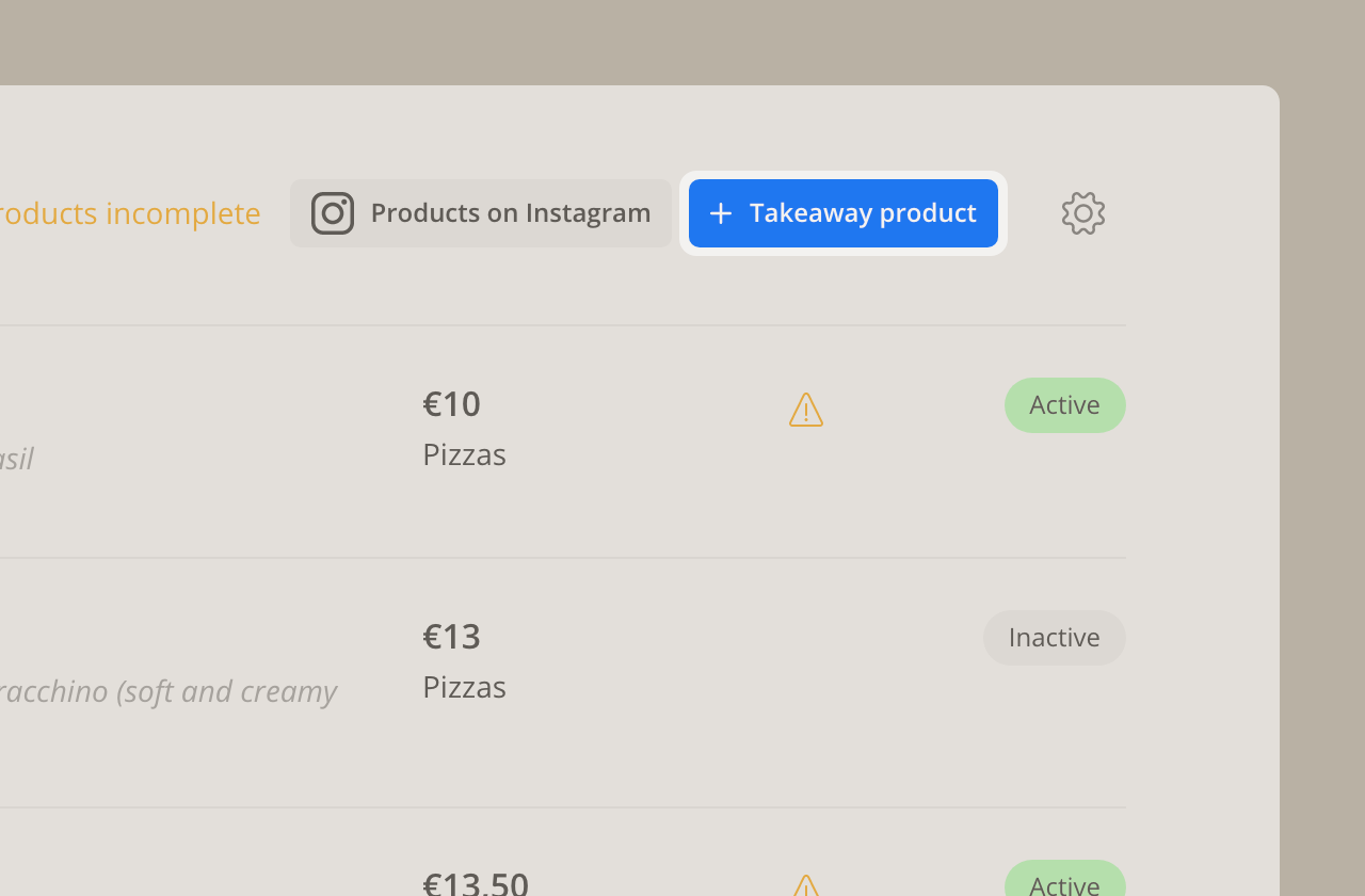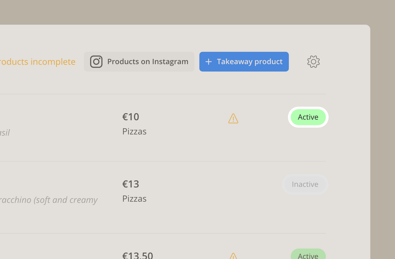 Or view in the blink of an eye which products are active by scanning the status in your Takeaway overview: