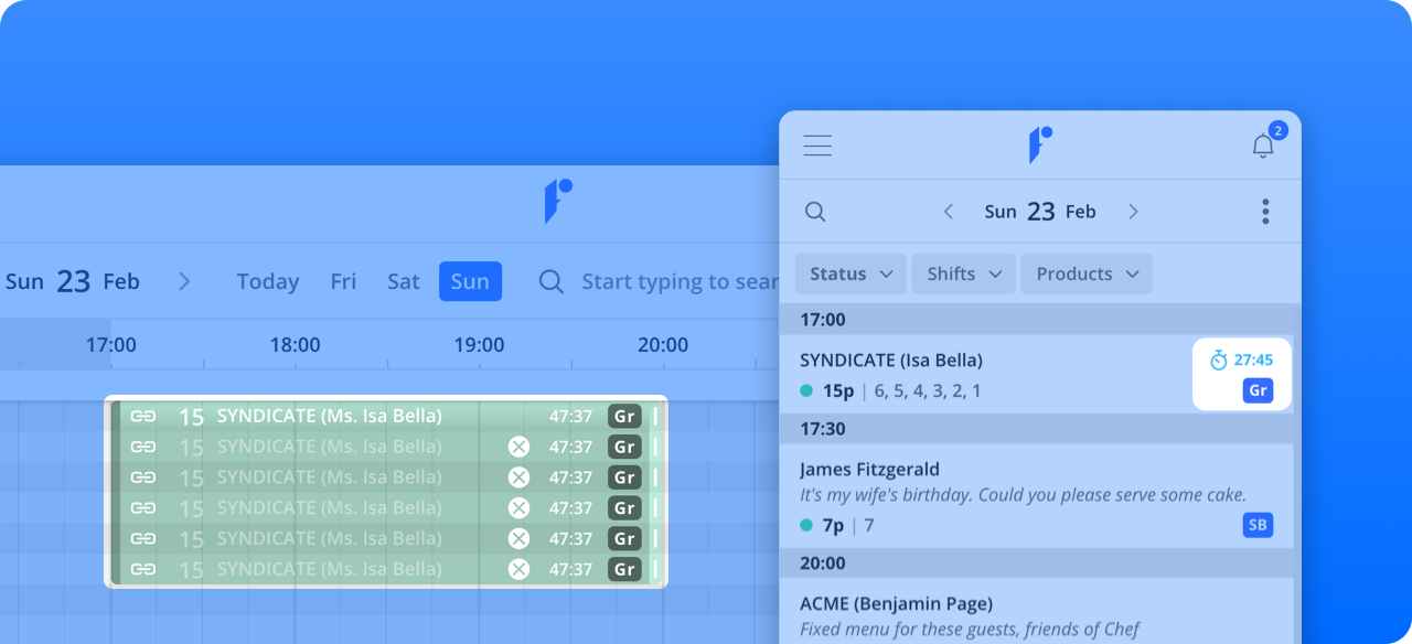 In Formitable, create a new reservation in the overview with the blue plus (+) button.