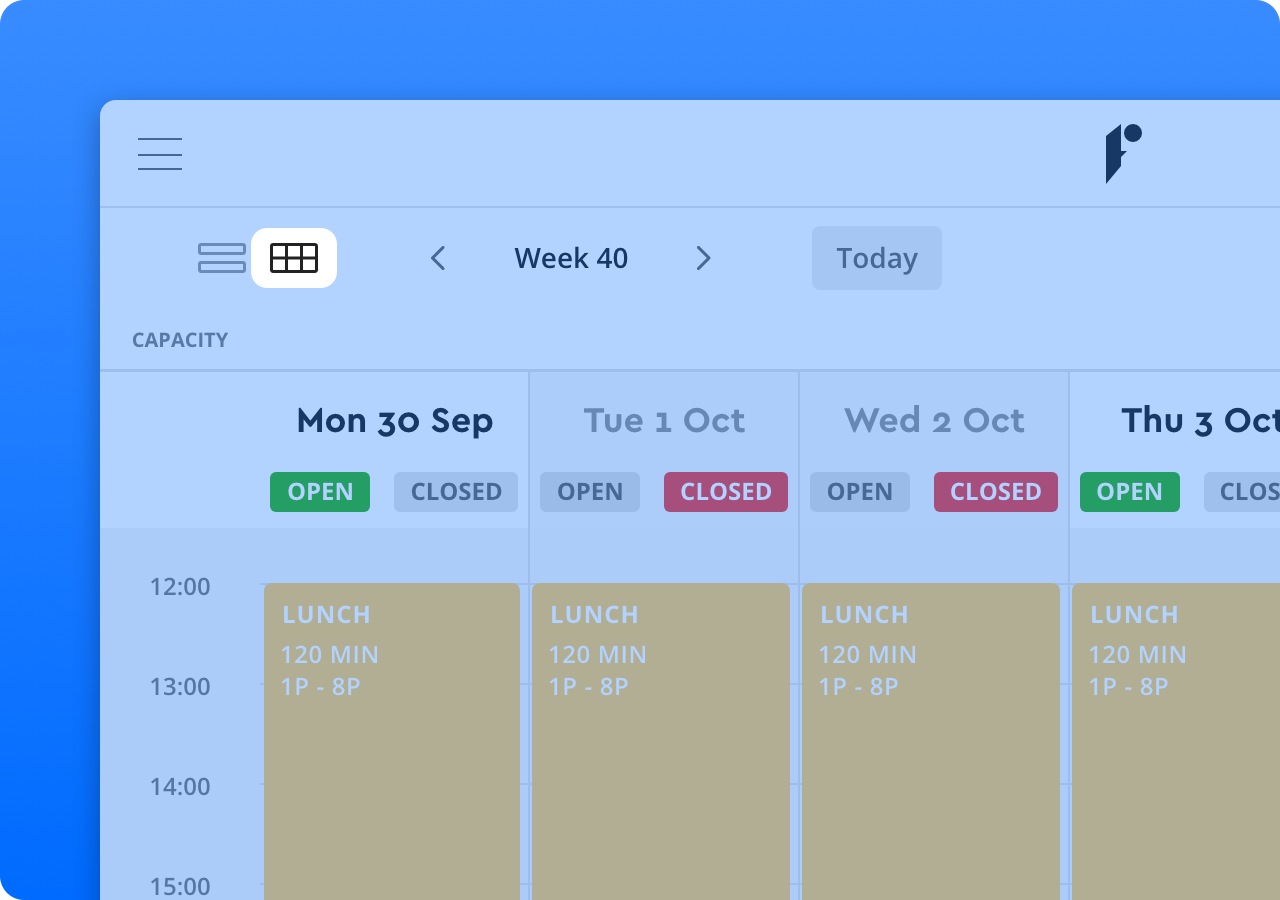 Are you not able to run the lunch shift next week? Or maybe you have a private event or internal meeting when you are not able to run a normal service. Quickly change your online availability in real-time to match what's going on.