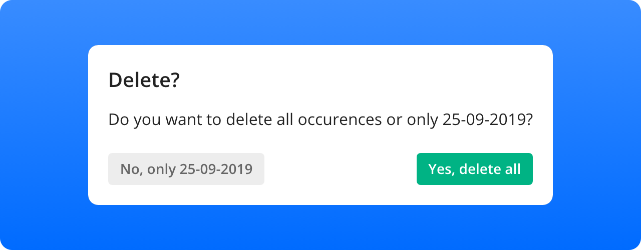 ❗ Please note that choosing "Yes, delete all" will remove the entire shift and can not be undone.