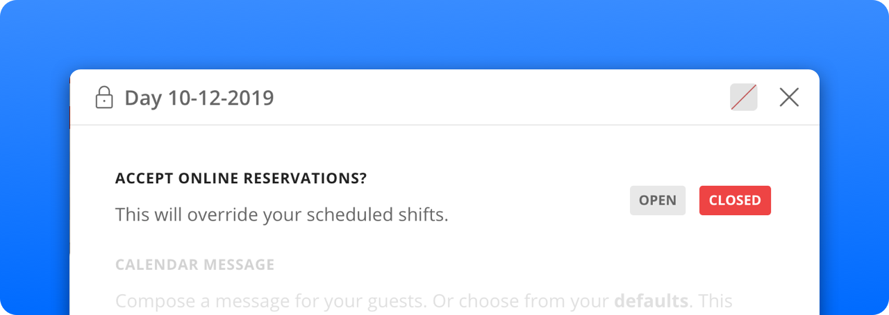 Please note that when you close any days or shifts, guests are no longer able to book on these time slots.