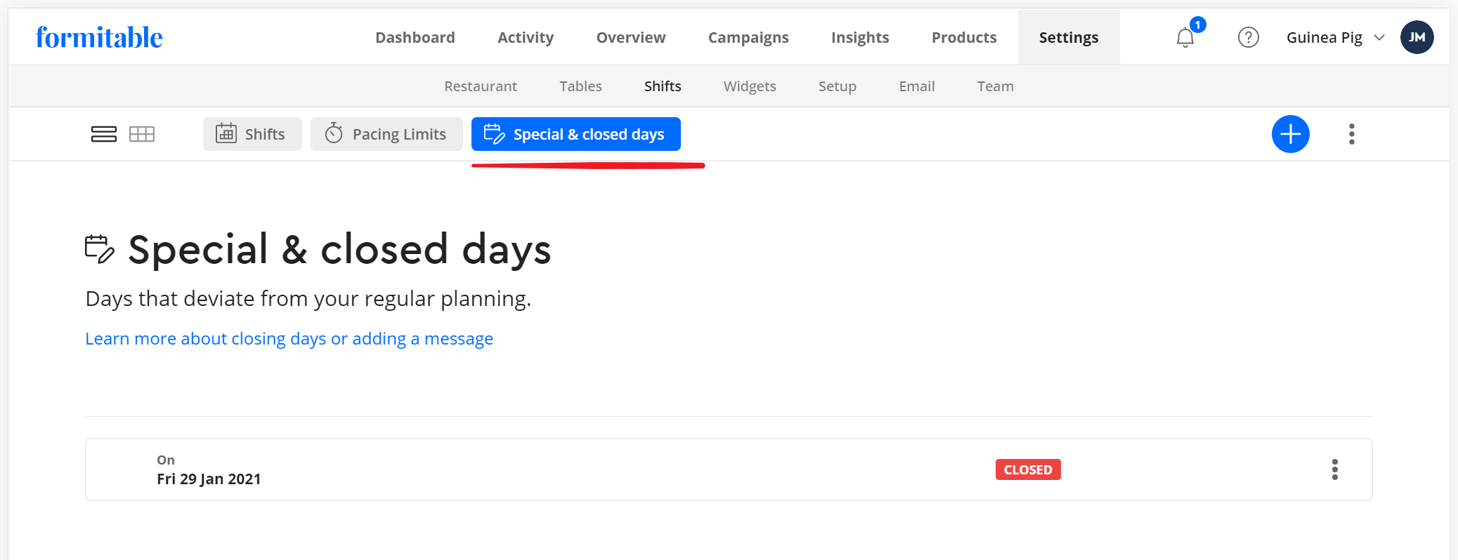 Public holidays, a special occasion, or a well-deserved summer break for the whole team. You and your team deserve a day off once in a while. Make sure your guests can not place reservations on those days by closing your restaurant in Formitable.
