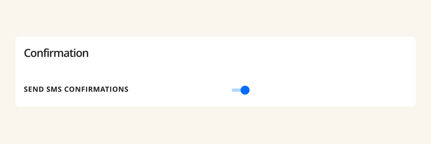 Gebruik de sliders om te bepalen voor welk items je een SMS wilt sturen: reservering-bevestiging, reservering-herinnering, en/of bevestiging van annuleren.