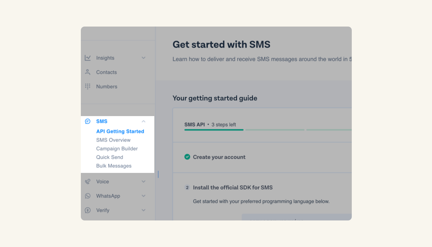 Ga naar de MessageBird App om een persoonlijk SMS bericht in te stellen.