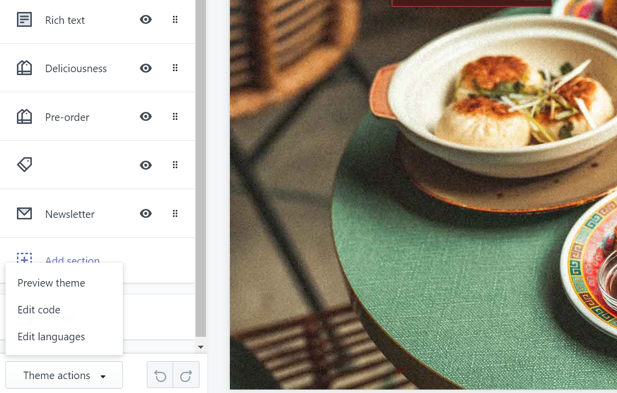 Selecteer Theme actions aan de onderkant van je scherm en vervolgens Edit Code.