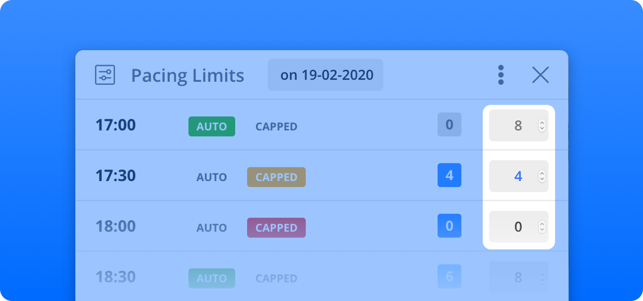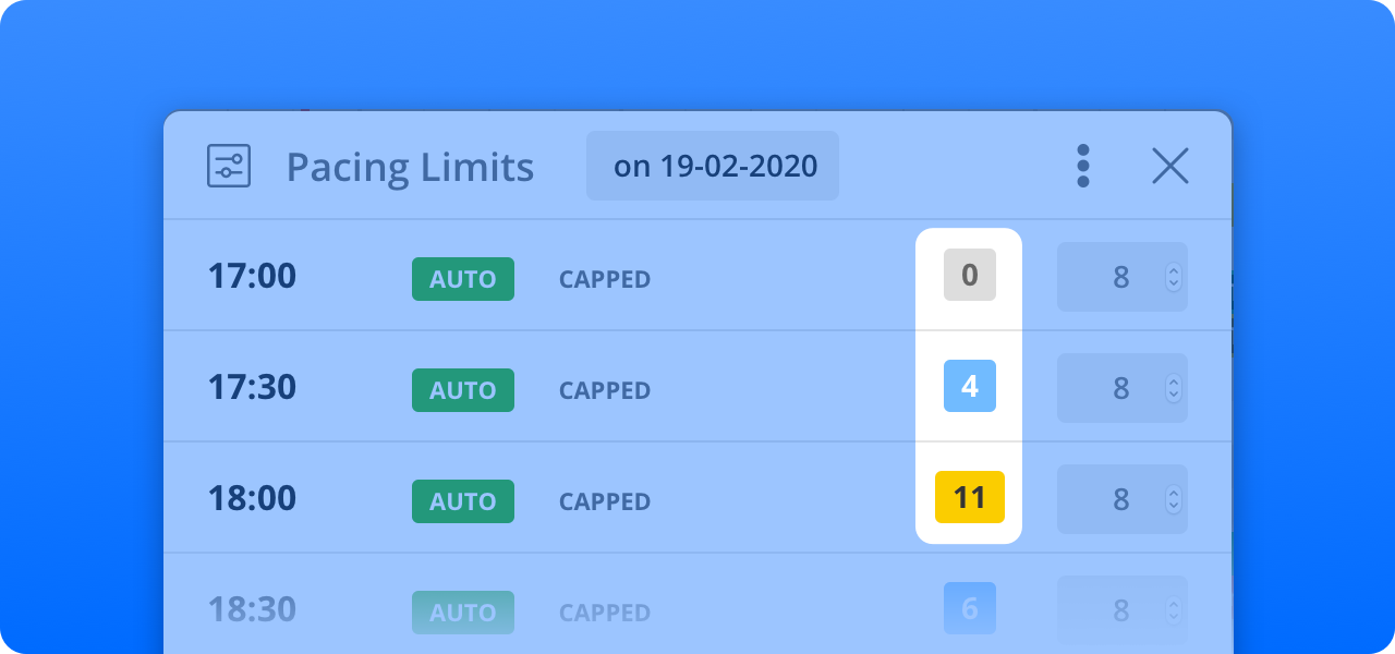 Je kunt zowel algemene Pacing Limits als Pacing Limits voor een specifieke dag hebben. Ze worden beide toegepast op hetzelfde tijdstip. In de praktijk zal altijd het laagste aantal worden gekozen zodat je niet overboekt raakt.