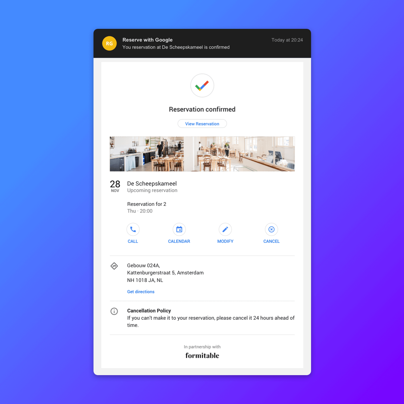 Reserveringen van Google worden real-time met Formitable gesynchroniseerd.